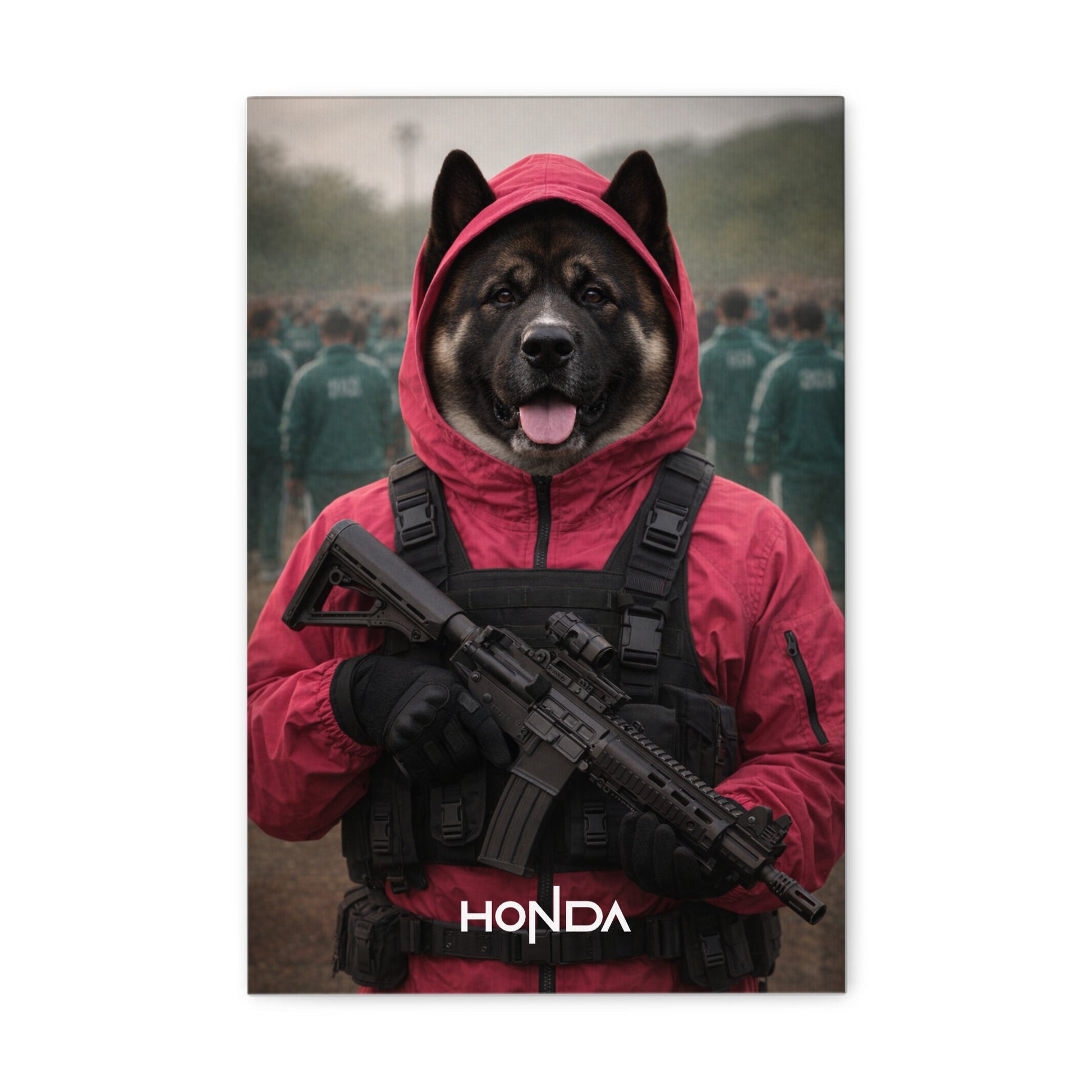 „Squid Game-Wächter Vibe“ Haustierportrait auf Leinwand – personalisiert