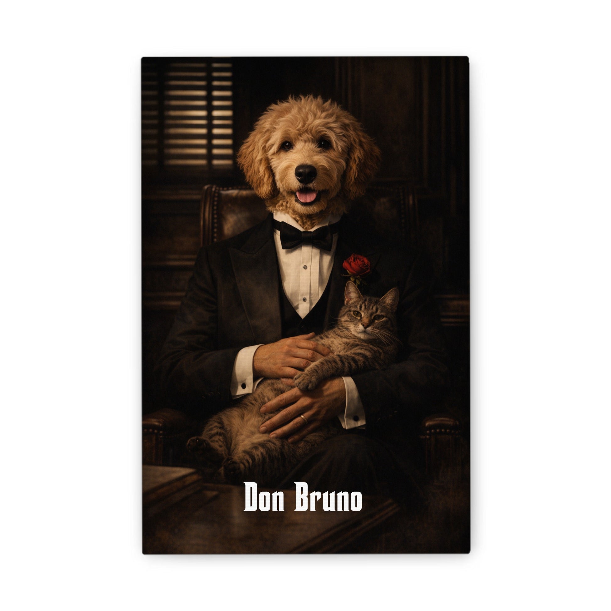 ,,Godfather-Vibe“ Haustierportrait auf Leinwand – personalisiert
